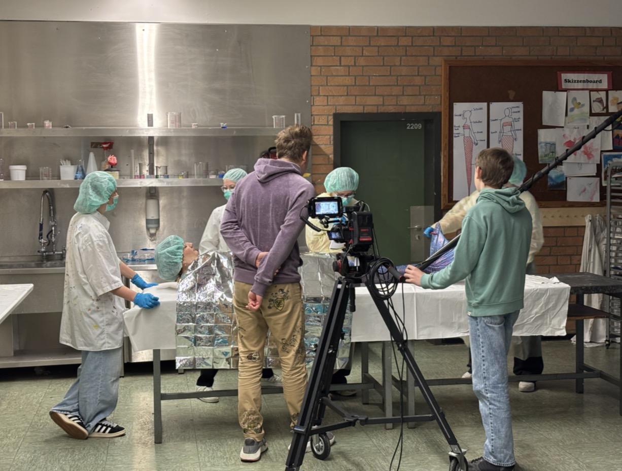 und Schüler mit einem Filmprojekt. Das Ziel war es, einem Kurzfilm für den Kunstwettbewerb der