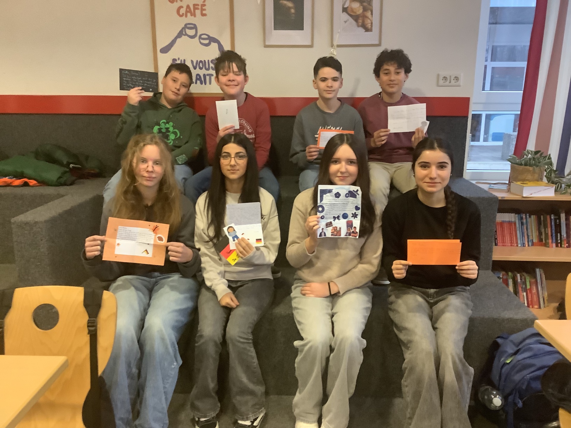 Die Briefe wurden persönlich adressiert und an die Partnerschule in Frankreich in Châtillon in der Nähe von Paris geschickt. Schon nach einiger Zeit trafen die ersten Antworten ein – zur großen Freude des Französischkurses. Die französischen Schülerinnen und Schüler antworteten ebenfalls mit liebevoll gestalteten Briefen, diesmal natürlich auf Deutsch. Einige legten sogar Fotos von sich selbst oder ihren Haustieren bei. Dadurch wurde der Austausch besonders lebendig und persönlich.