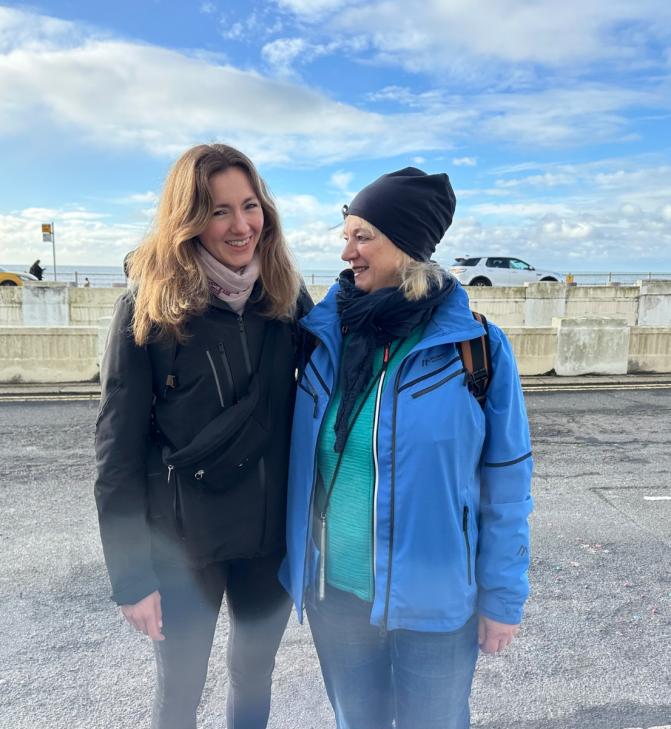 Am zweiten Tag erkundeten die Schülerinnen und Schüler Hastings bei einer Stadtführung in zwei Gruppen. Neben spannenden Anekdoten zur Geschichte der Stadt sorgte ein besonderes Souvenir für Aufmerksamkeit: Frau Porbadnik bekam einen Fossilienstein geschenkt – den sie anschließend den ganzen Tag mit sich herumtragen musste.